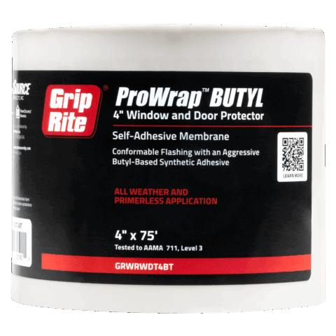 ProWrap BUTYL Window and Door Protector is a self-adhesive butyl flashing tape that preserves the air and water barrier around door and window assemblies. Creating a powerful seal around window and door flanges, it prevents bulk water intrusion and provides continuous protection against the elements.